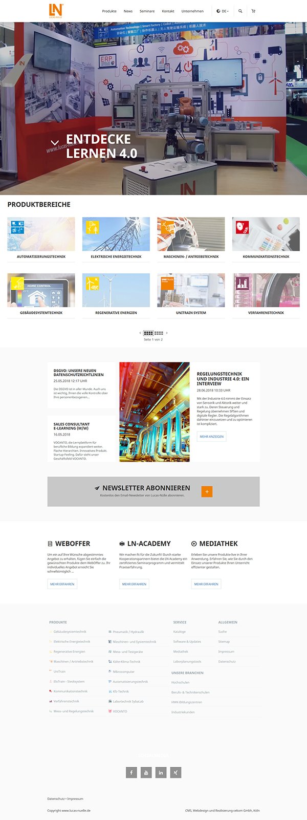 The new site presents itself in a modern, bright design and clearly establishes a visual connection to the technology industry in which LN is active by means of large-area photos. A special feature in this context are the video headers, which give an insight into various machine processes and make the page appear dynamic.